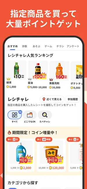 - 移動やチラシ閲覧、レシート送付など、誰でも簡単にポイントを貯められる!