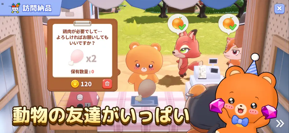かわいいキャラクターと癒される雰囲気が最高です。農場を育てるのがとても楽しく、ついつい時間を忘れてしまいます。 操作も簡単で、誰でも気軽に楽しめるゲームだと思います。